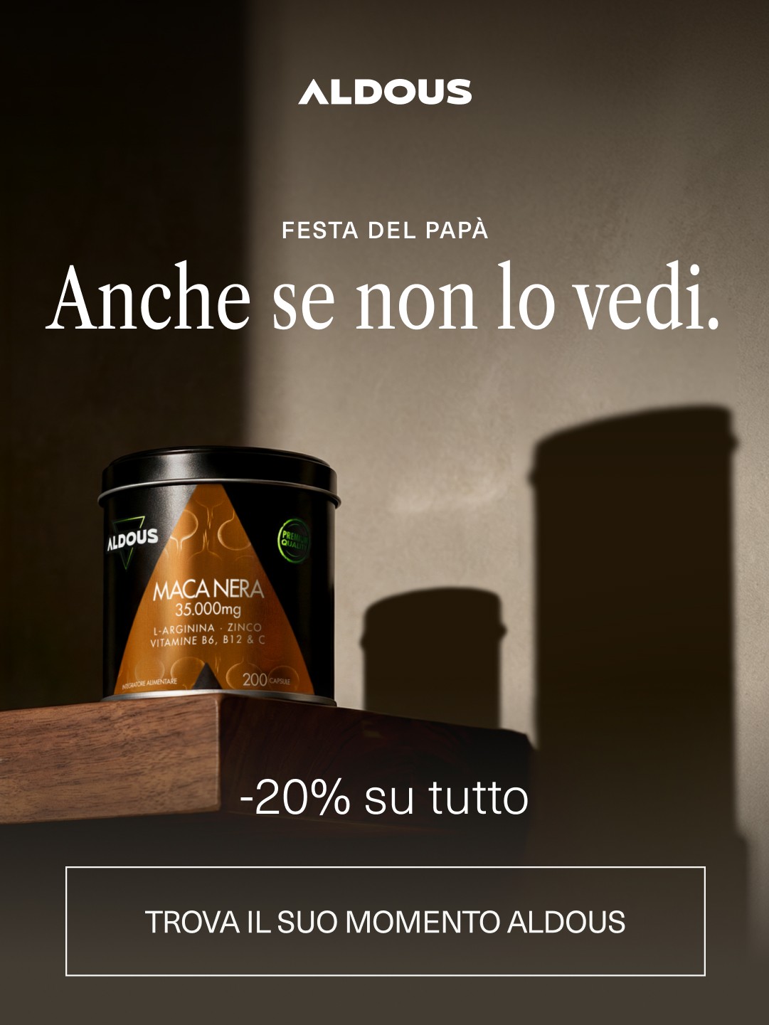 Aldous Bio: -20% su tutto per la Festa del Papà | Regalagli il suo Momento Aldous