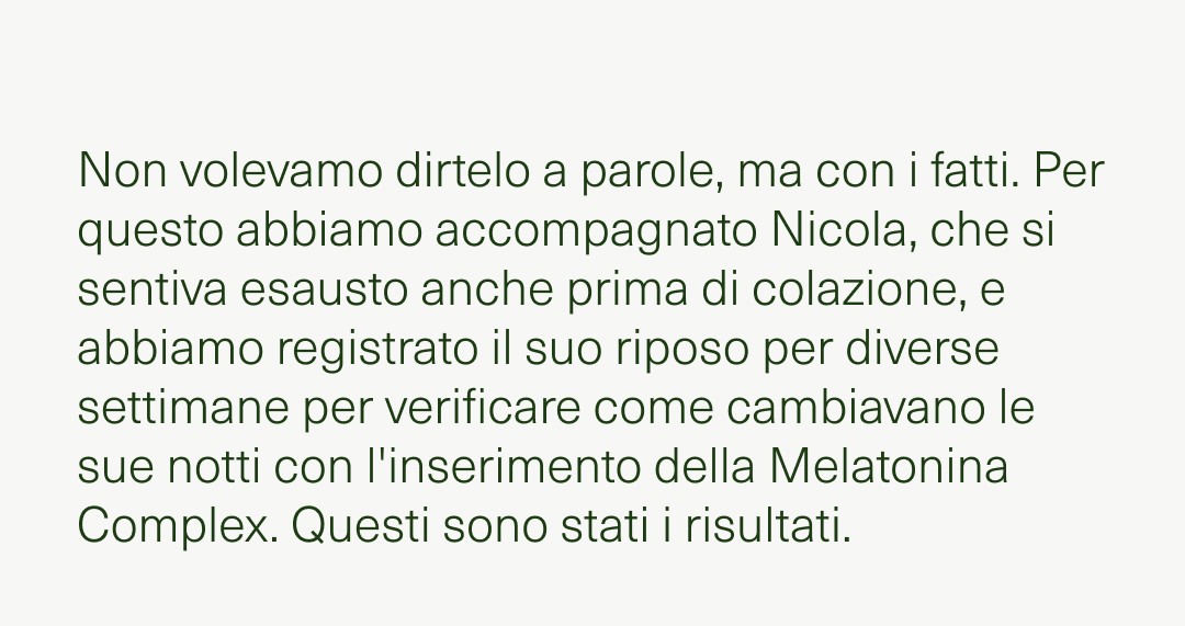 Notti brevi, giornate lunghe. Questa era la routine di Nicola finché non ha iniziato a prendere Melatonina Complex ogni sera.