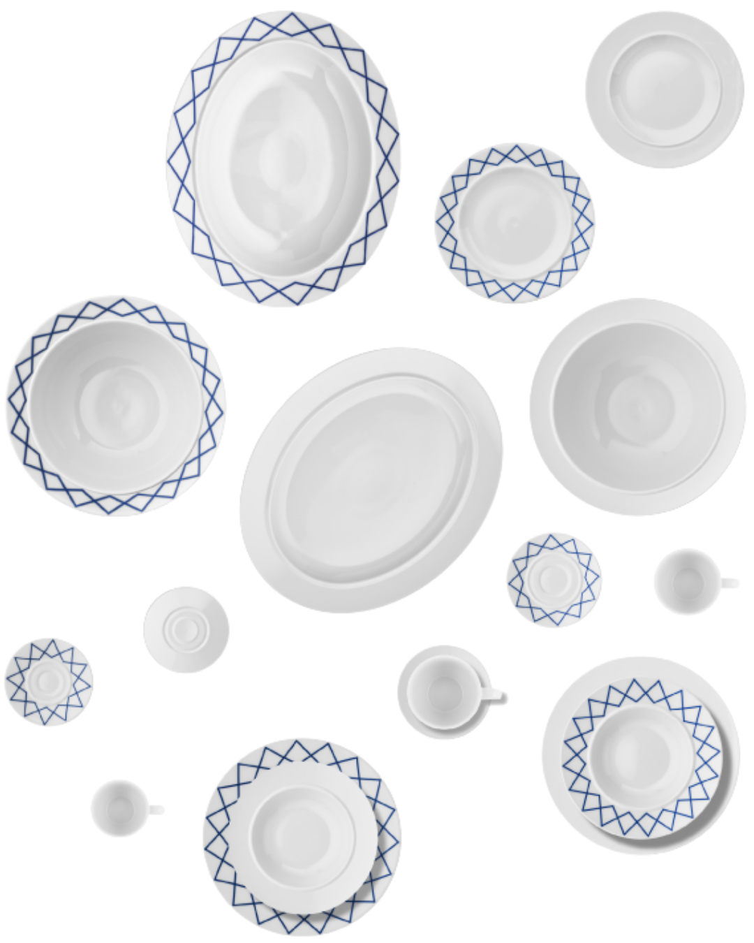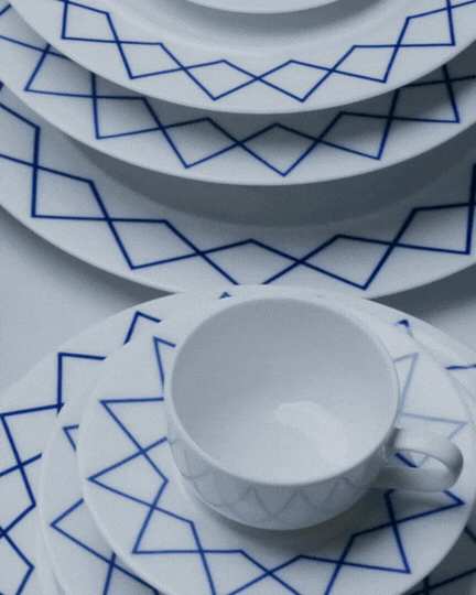 La riedizione propone un assortimento completo di piatti in porcellana realizzati in Germania, in una zona di eccellenza manifatturiera nel settore. Disponibile nella versione bianca e nella variante decorata My Beautiful China, il servizio permette di combinare liberamente gli elementi. Le ampie falde dei piatti, più generose della parte centrale, anticipavano già negli anni Novanta un gusto oggi diffuso.