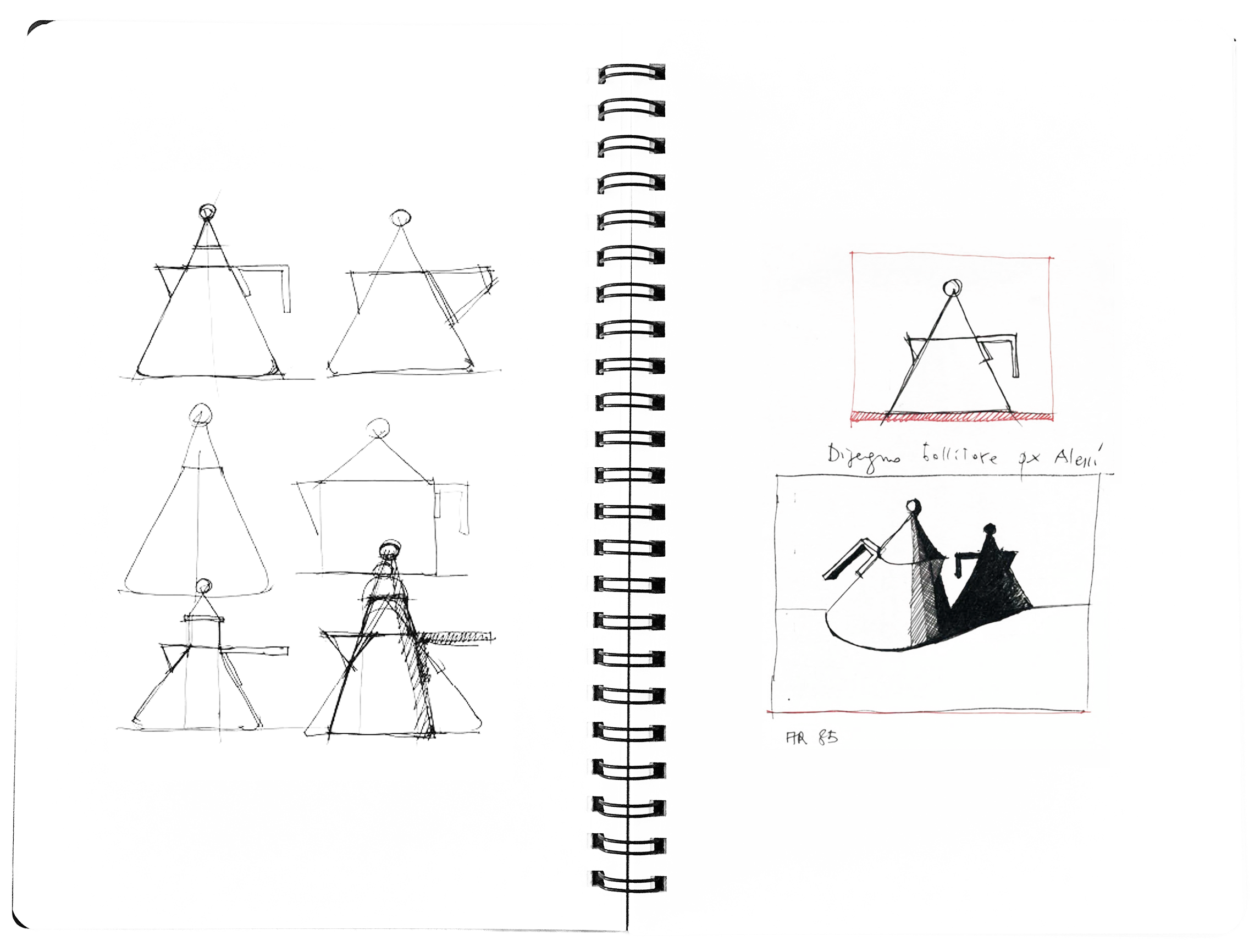 Il bollitore Il conico, progettato per Alessi nel 1986, nasce dal linguaggio architettonico di Aldo Rossi. A partire dall’incontro con Alessi, progettare per caffè e tè diventa per Rossi una vera ossessione, da cui nascono icone del design del XX secolo. I coni, ricorrenti nei suoi disegni, prendono forma sul fornello, arricchendo il paesaggio domestico.