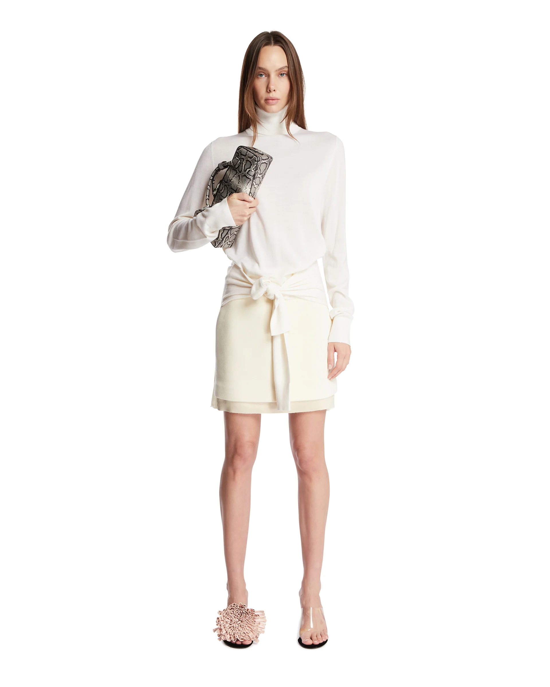 Il daywear rilegge il power dressing degli anni ’80, mentre il nightwear si distingue per nuove proporzioni. Completa la collezione la nuova mini clutch, i tacchi curvi iconici e i gioielli modulari, tutti realizzati in Italia. Disponibile da Antonia in-store e online.