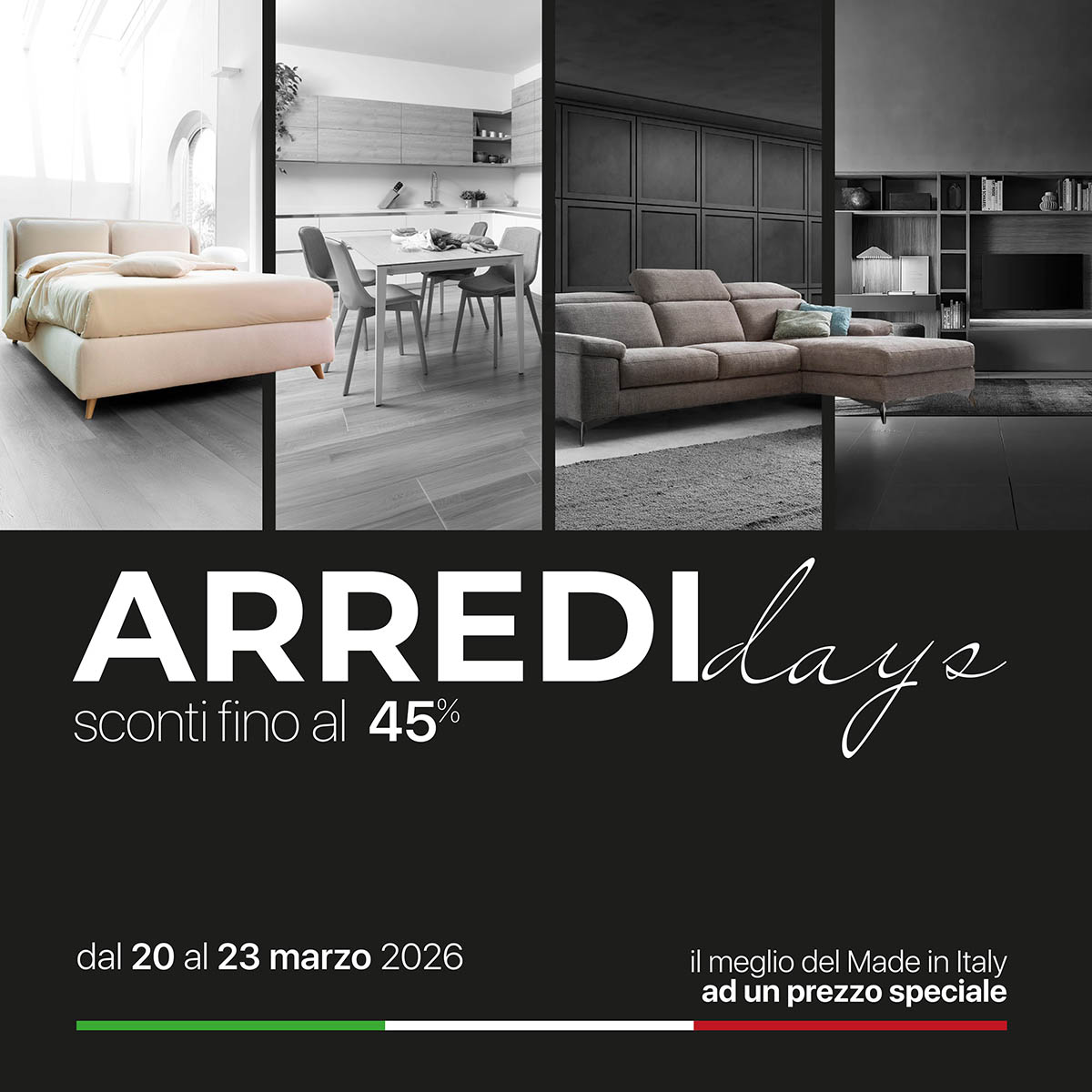 Ci sono occasioni che capitano… e altre che vanno colte al volo Domani, Lunedì 23 Marzo terminano gli ARREDIDays E' l'ultimo giorno per chi vuole trasformare la propria casa con il meglio del design italiano, approfittando di condizioni davvero speciali.