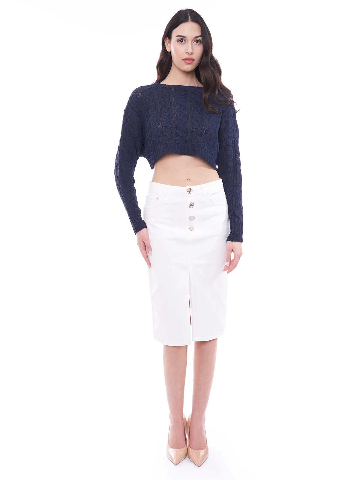| Gonna midi con bottoni gioiello Vicolo |