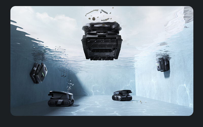 Pulisce superfici, pareti, fondi, linee dell'acqua e piattaforme poco profonde ≥35 cm — comodità totale.