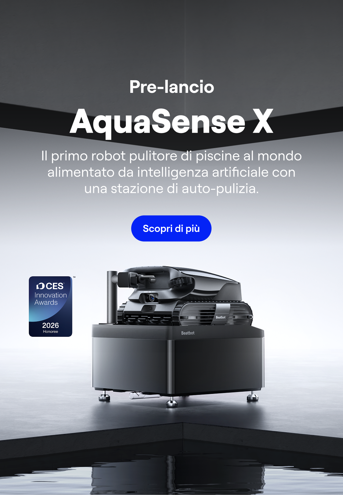 La stazione AstroRinse™ pulisce il filtro e svuota i detriti in 3 minuti — pulitura senza intervento manuale.