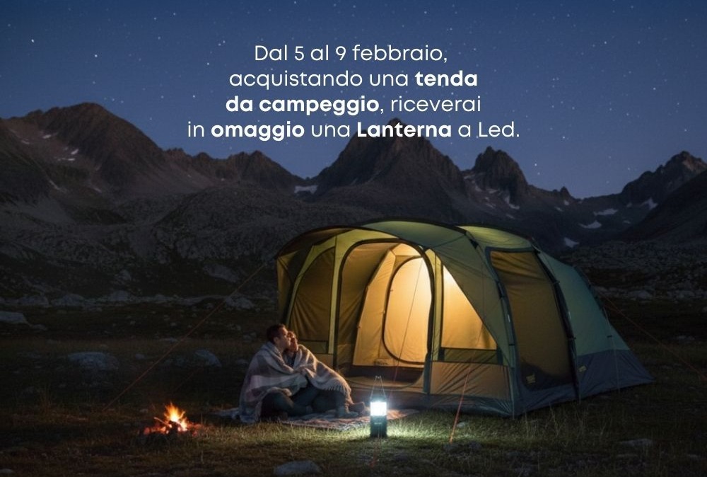 Dal 5 al 9 febbraio, acquistando una tenda da campeggio, riceverai in omaggio