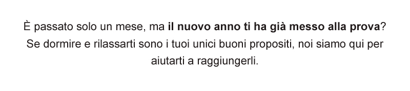 È passato solo un mese, ma il nuovo anno ti ha già messo alla prova? Se dormire e rilassarti sono i tuoi unici buoni propositi, noi siamo qui per aiutarti a raggiungerli. |