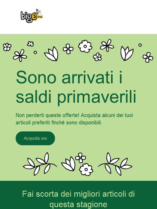 BIGESHOP Spedizione gratuita SALDI DI PRIMAVERA — Acquista 1 prodotto : -5% Codice BIGSPRING26