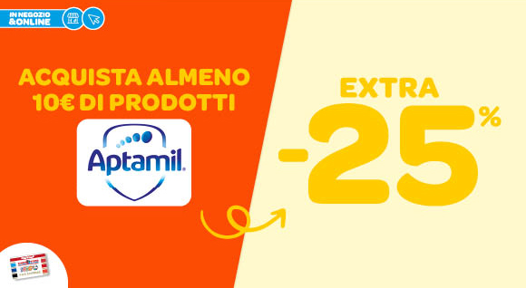Sconto extra 25% all’acquisto di almeno 10€ di prodotti Aptamil.