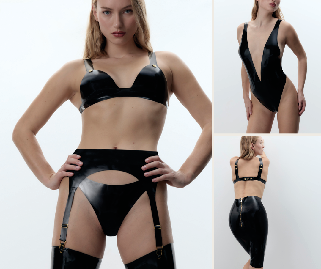 Questo irresistibile set è realizzato in morbido lattice naturale, impreziosito da bottoni a pressione dorati. Abbinalo al tuo outfit o indossalo come set completo.