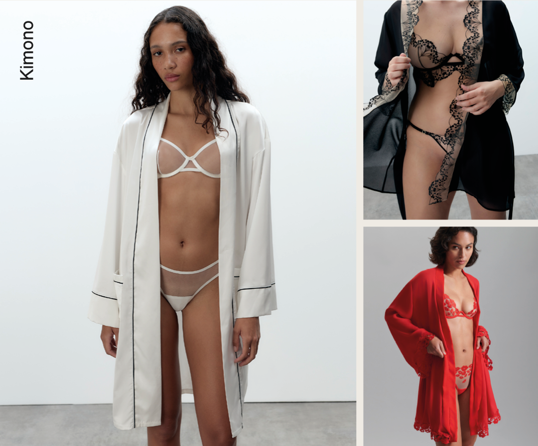 Un capospalla lussuoso da indossare sopra della splendida lingerie, realizzato con tessuti di alta qualità e rifinito con ricami esclusivi.