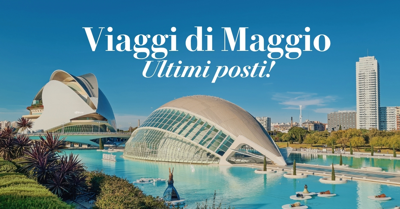 Sei ancora in tempo per partire a maggio: lasciati ispirare da un viaggio di gruppo in pullman o in aereo e scopri la nostra selezione di partenze, sempre con prezzo bloccato dopo la conferma della prenotazione.