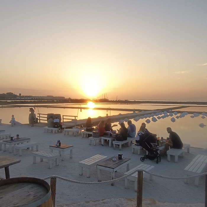L’emozione di sorseggiare un aperitivo con vista sulle Saline Genna a Marsala, un luogo spettacolare dove si può ammirare uno dei migliori tramonti in Italia. Un momento romantico e indimenticabile, vivendo la magia della Laguna dello Stagnone. |