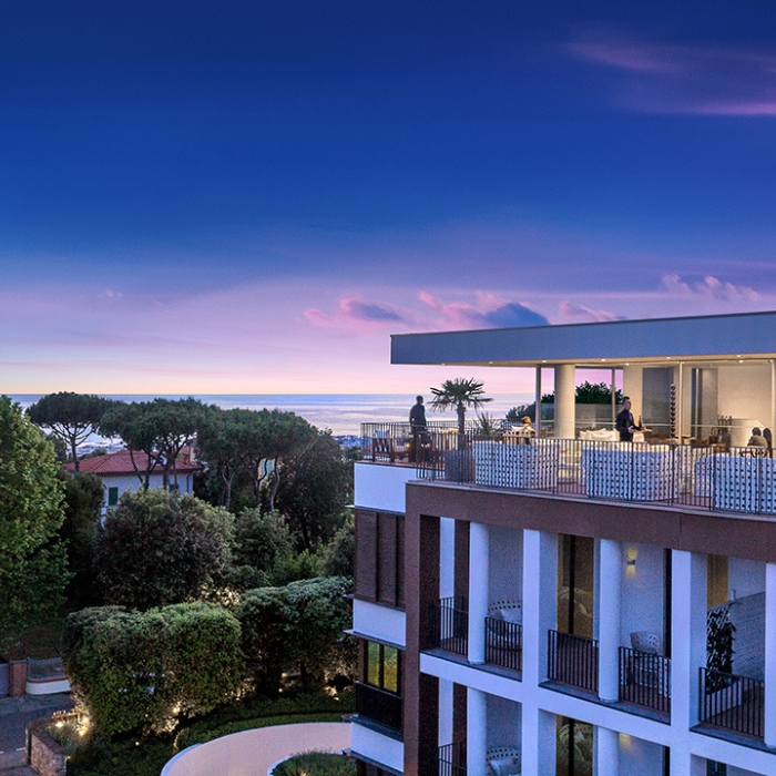 Situato all'ultimo piano dell’hotel Principe Forte dei Marmi, il 67 Sky Lounge Bar offre un ambiente esclusivo e dinamico che sovrasta tutta la costa della Versilia. Lo spazio interno si fonde con quello esterno e forma un luogo unico e suggestivo tra cielo e mare. |