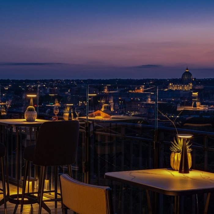 Adèle Mixology Lounge è l'esclusivo sky bar all’ottavo piano del famoso luxury hotel Splendide Royal. Con la sua vista mozzafiato a 360 gradi su Roma, l'Adèle Mixology Lounge è un vero e proprio salotto all'aria aperta sotto il cielo della capitale. |