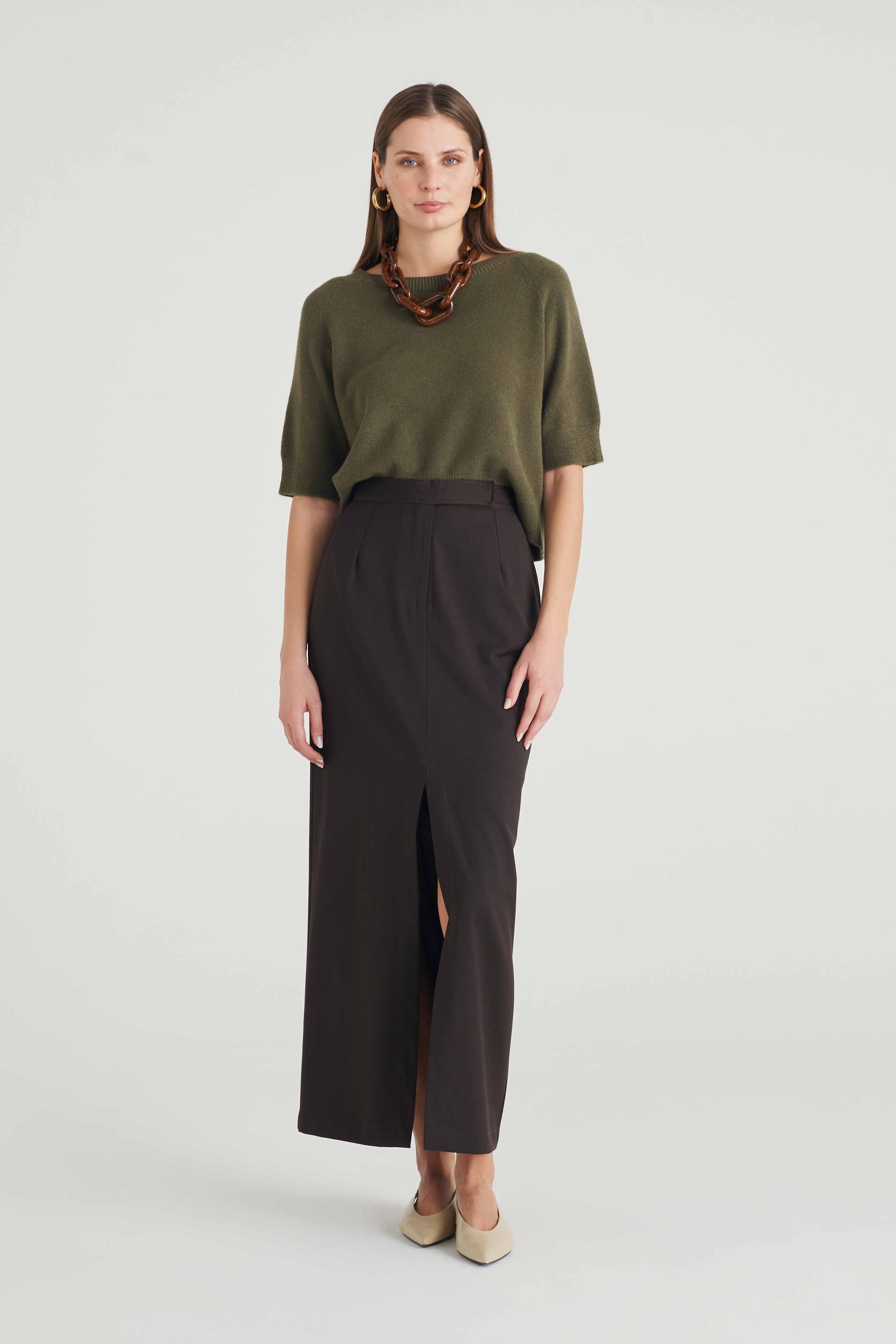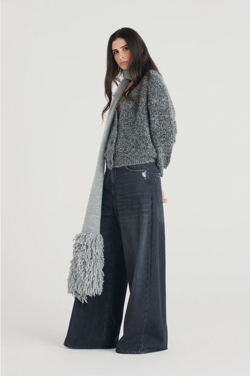 Questo maglione lungo, realizzato con un raffinato punto treccia e dettagli a costine, unisce eleganza e comfort. La lavorazione a treccia dona struttura e un aspetto sofisticato, mentre le costine assicurano una vestibilità confortevole. Perfetto per chi cerca un capo versatile e di qualità, ideale per completare con stile ogni outfit autunnale o invernale. |