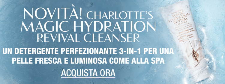 Darling, spendi oltre 100 € acquistando i segreti di bellezza di Charlotte, come il NUOVO Charlotte's Magic Hydration Revival Cleanser! Un mini Charlotte’s Magic Serum Crystal Elixir e una mini Charlotte’s Magic Water Cream verranno aggiunti gratuitamente ed automaticamente alla tua shopping bag!*