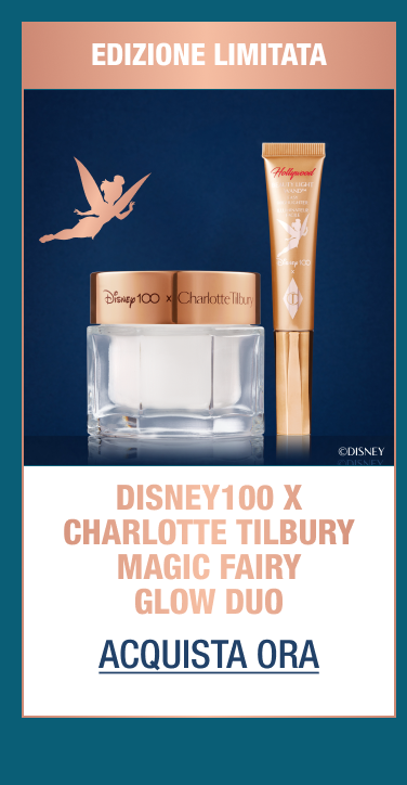 | Darling, preparati a ILLUMINARE IL MONDO con i miei NUOVI kit di bellezza in EDIZIONE LIMITATA Disney100 x Charlotte Tilbury! Che tu voglia una MAGICA E INCANTEVOLE BRILLANTEZZA o zigomi SUPER BRILLANTI, questi STUPENDI kit di bellezza donano a chiunque, ovunque sia il potere di ipnotizzare a mezzanotte! |