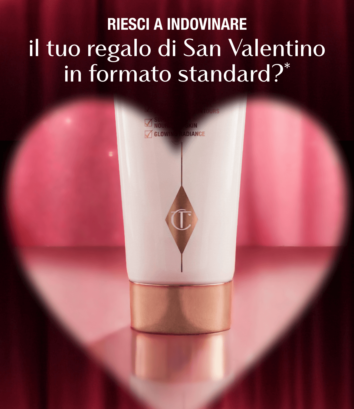 Un regalo in formato standard verrà automaticamente aggiunto al tuo carrello con una spesa di oltre 135 € su CharlotteTilbury.com o sull'app!* È il segreto per splendere dalla testa ai piedi a San Valentino: riesci a indovinare di quale icona di bellezza si tratta, darling? |
