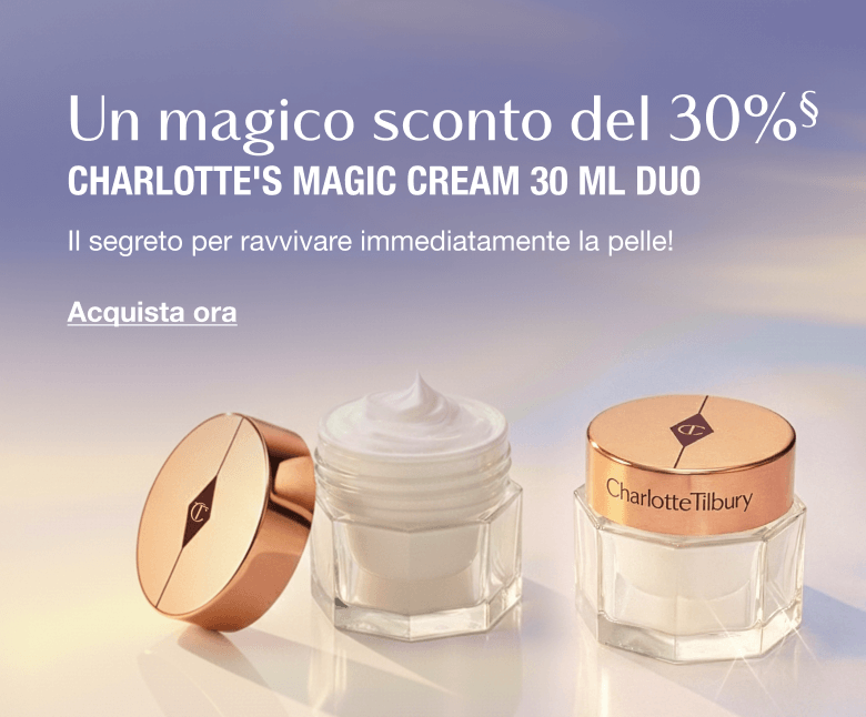 *Ricevi in omaggio una Charlotte’s Magic Body Cream da 200 ml con una spesa superiore a 135 € in un'unica transazione sul sito web o sull'app (importo qualificante). Fino a esaurimento scorte. Termina alle 05:59 CET del 16 febbraio 2026. L'acquisto di carte regalo elettroniche, consulenze, abbonamenti, i costi di spedizione e le confezioni regalo non sono inclusi nell'Importo Qualificante. Per conoscere i Termini e condizioni completi, vedi Prodotto in regalo con promozioni di acquisto.