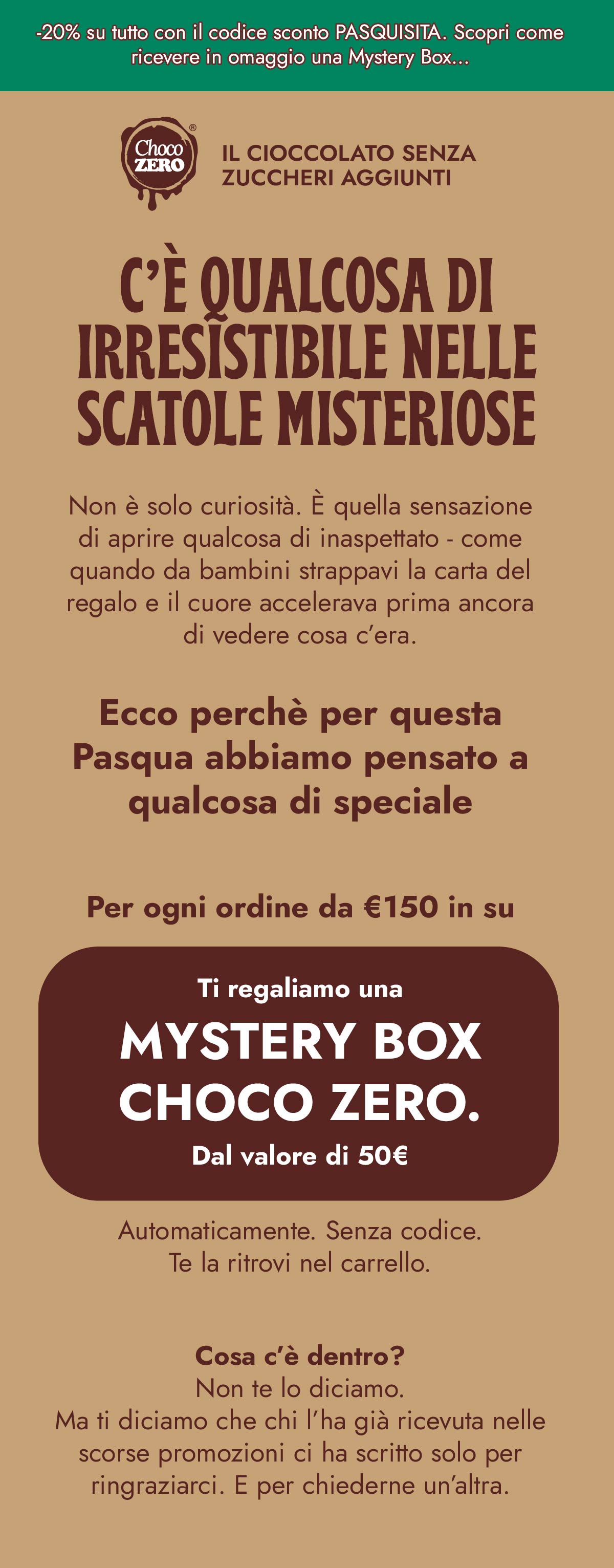 Fino a domani -20% su tutto con il codice sconto PASQUISITA. Scopri come ricevere in omaggio una Mystery Box…
