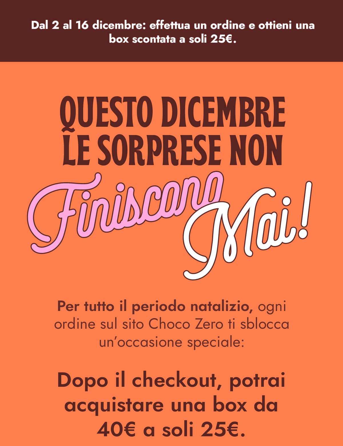 Dal 2 al 16 dicembre: effettua un ordine e ottieni una box scontata a soli 25€.