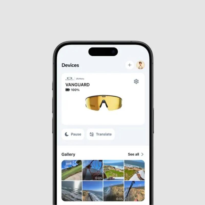 APP META AI Utilizza l'app Meta AI per gestire i tuoi Oakley Meta Vanguard, regolare le impostazioni, condividere i tuoi scatti e interagire con l'assistente Meta AI. L'app è fondamentale per vivere un'esperienza completa. |