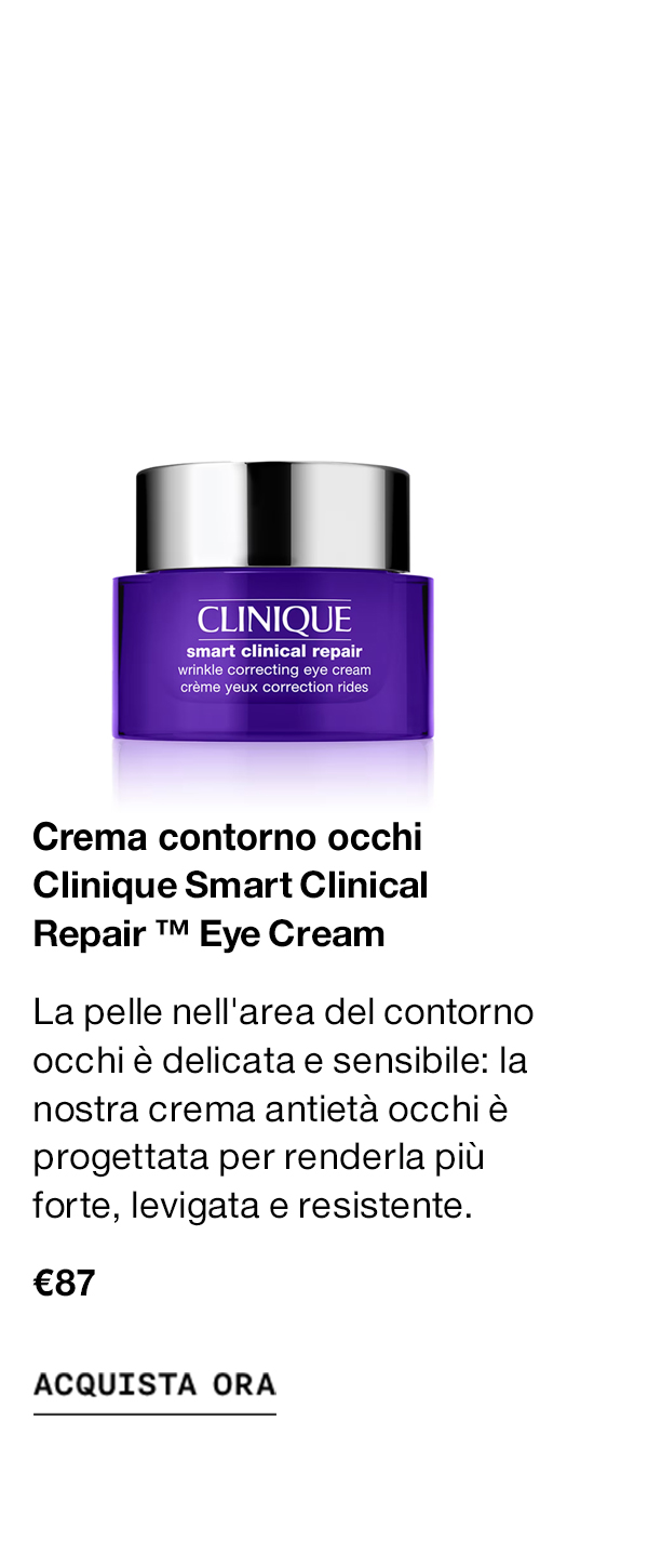 Ricevi la presente comunicazione a seguito della tua registrazione alla newsletter di Clinique per l'invio di informazioni, eventi e offerte. Per ulteriori informazioni sulla politica privacy di Estée Lauder s.r.l.-Clinique, sui tuoi diritti in materia di dati personali e su come esercitarli, consulta la nostra Informativa Privacy.