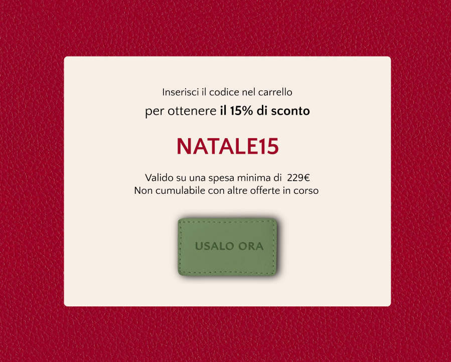 Approfitta dello sconto per completare il tuo look di Capodanno con vera pelle artigianale Made in Italy. Le spedizioni non si fermano, continuiamo a lavorare anche dopo Natale per farti arrivare tutto in tempo per il cenone!