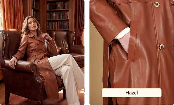 PER LEI: Hazel L'Hazel è il cappotto lungo a doppio petto, con spacchi laterali, in pelle di agnello naturale effetto vintage. La lunghezza è quella che struttura la silhouette senza bisogno di imbottitura né supporti: è la pelle che porta il peso della forma. Gli spacchi laterali alleggeriscono il movimento e rendono il capo portabile anche al di fuori dei contesti più formali. Il cuoio, come nello Spinel, è un effetto vintage naturale che si sviluppa nel tempo: tra qualche anno questo cappotto sarà ancora più bello di come è adesso.