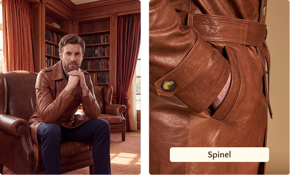 c'è un colore che funziona sempre, in qualsiasi stagione e su qualsiasi outfit: il cuoio. Caldo senza essere pesante, neutro senza essere anonimo. È il colore che unisce i due cappotti di questa newsletter. Stesso doppio petto, stesso pellame di agnello lavorato con effetto vintage, stessa origine: il laboratorio di Solofra. Due capi diversi per struttura e lunghezza, ma costruiti con la stessa mano. PER LUI: Spinel Lo Spinel è un cappotto doppio petto in pelle di agnello pull up effetto vintage. Il cuoio su questa pelle non è un colore piatto: cambia con la luce, si scurisce con l'umidità, recupera tono con il caldo. È un cappotto che ha carattere già dal primo giorno, e ne acquista altro con ogni utilizzo.