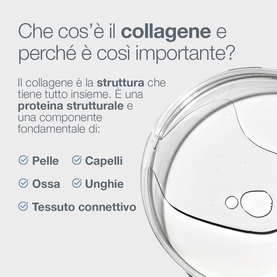 Proteggendo il tuo collagene oggi, sostieni nel tempo la compattezza, l’elasticità e un aspetto sano della pelle.