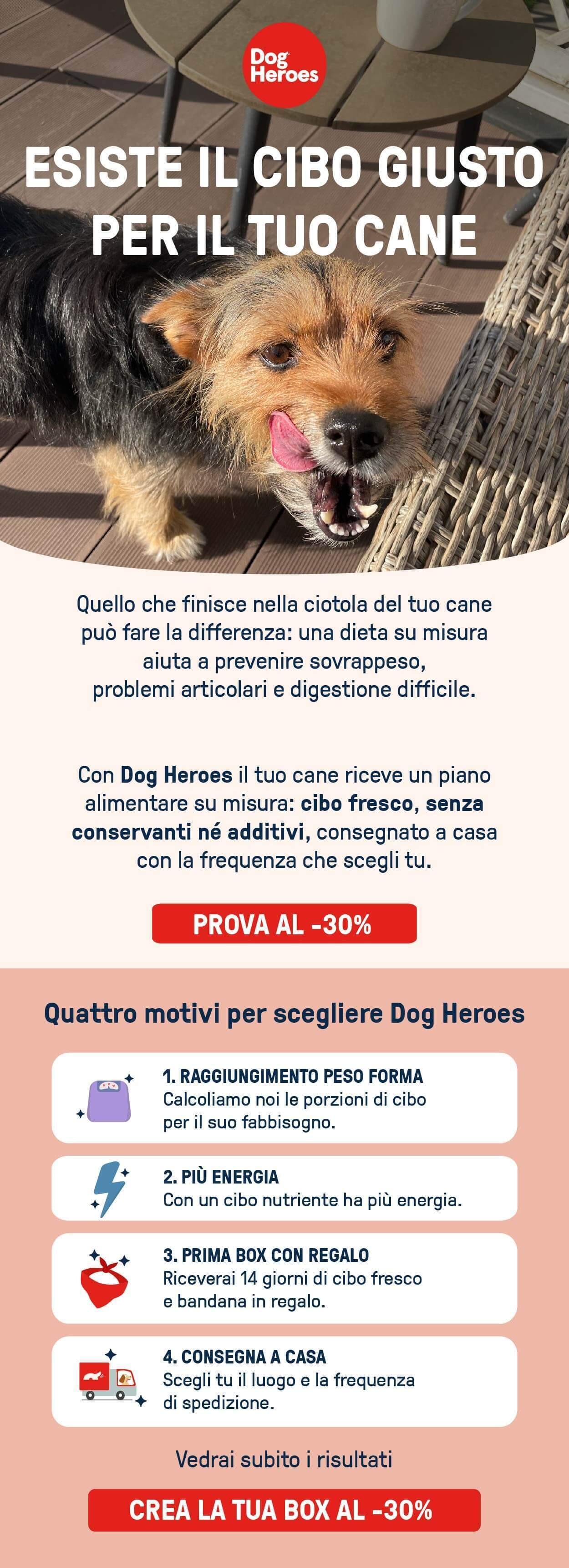 Prova il cibo fresco Dog Heroes e vedi subito i risultati