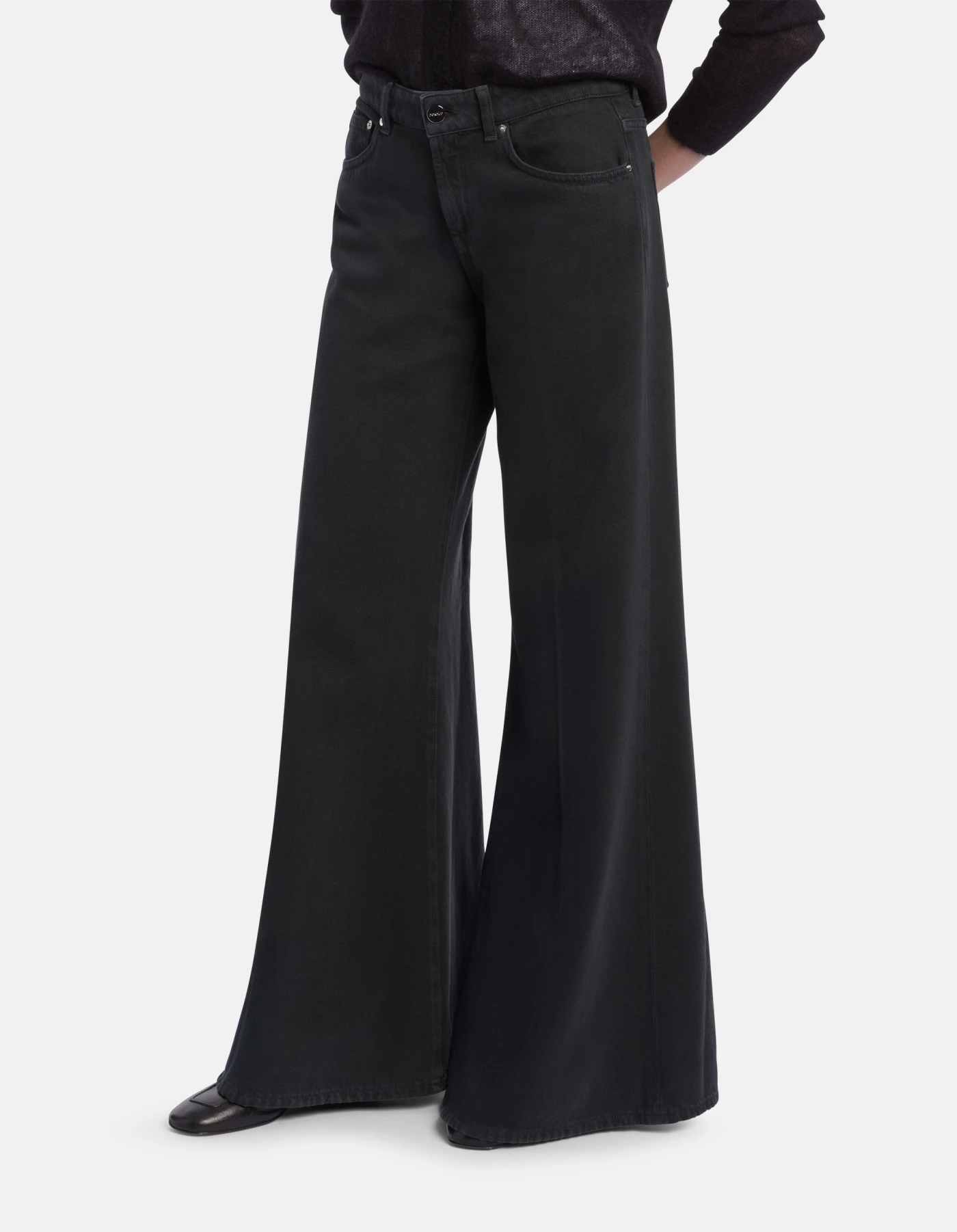 JACKLYN · REINTERPRETA IL CLASSICO CINQUE TASCHE CON VITA BASSA E GAMBA A PALAZZO, DEFINENDO UNA SILHOUETTE AMPIA E DECISA