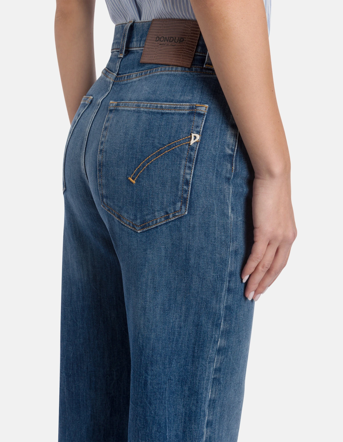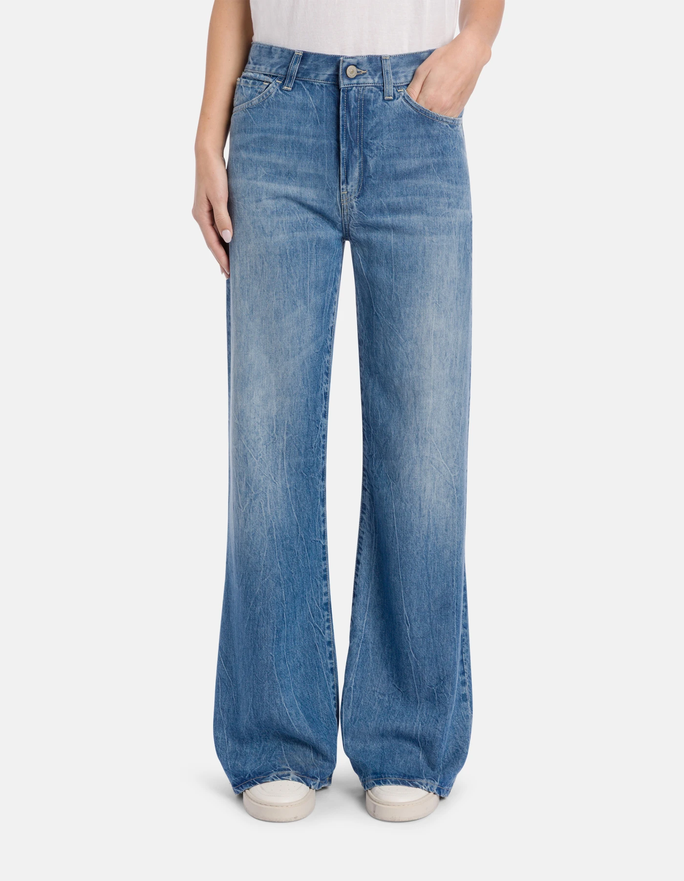 AMBER · COMPLETA LA PROPOSTA CON UNA VERSIONE EQUILIBRATA DEL FIT WIDE LEG, CARATTERIZZATA DA VITA REGOLARE E GAMBA AMPIA
