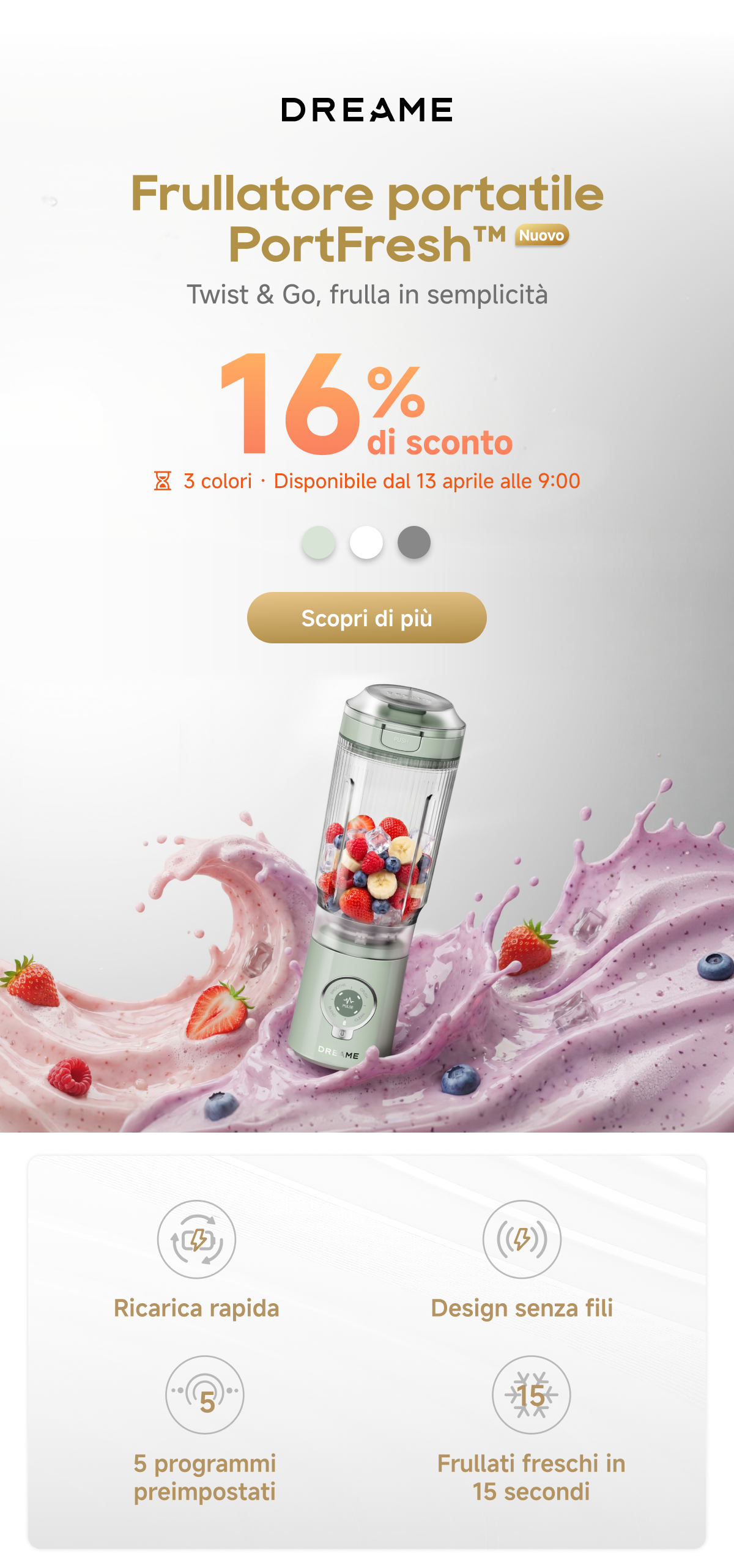 🥤Prossimamente: Frullatore portatile Dreame – Frulla ovunque, in qualsiasi momento