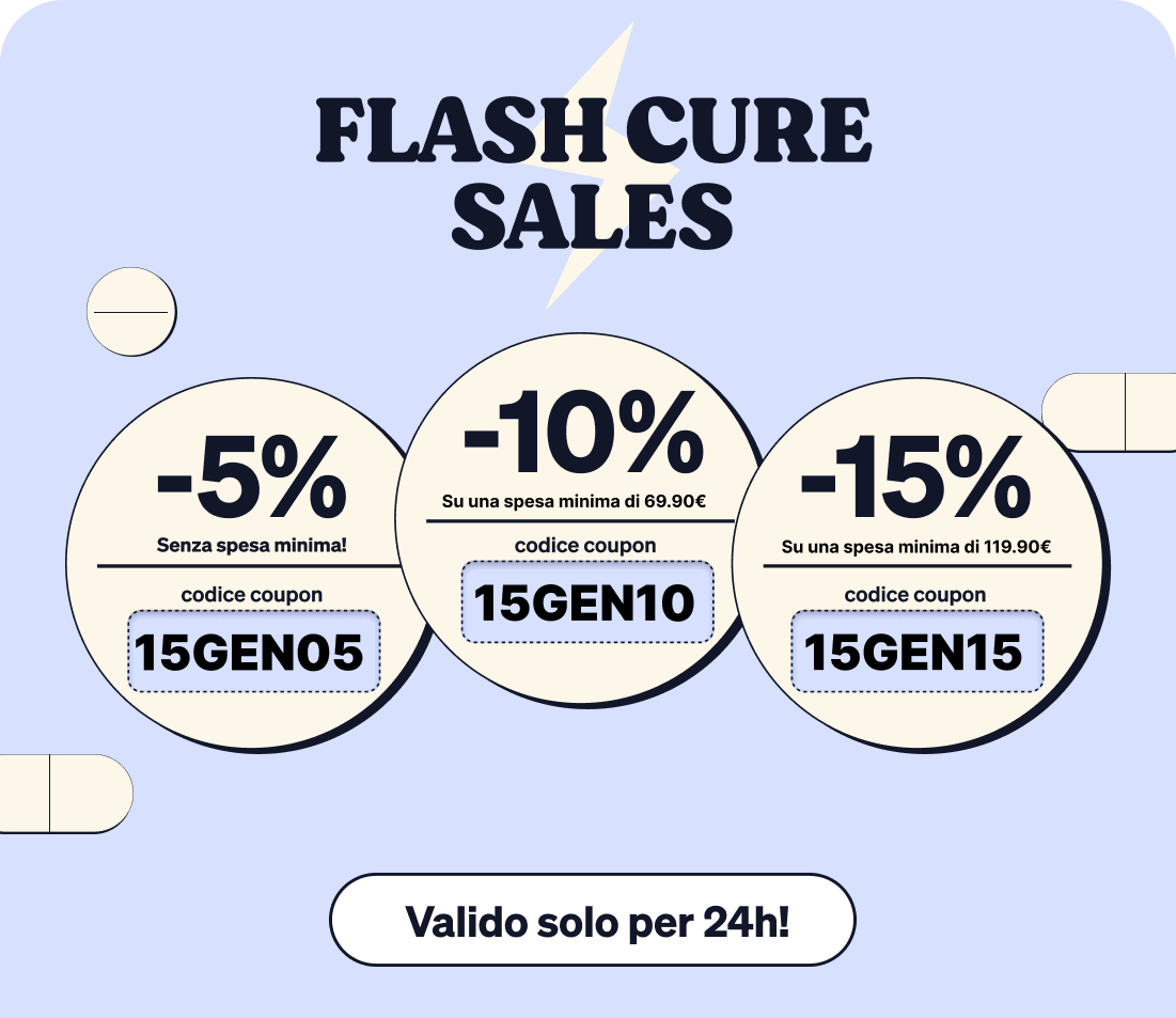 Codice valido fino al 15/01 alle 23.59 I farmaci da banco e i prodotti con bollino Super Prezzo sono esclusi dalla promozione |