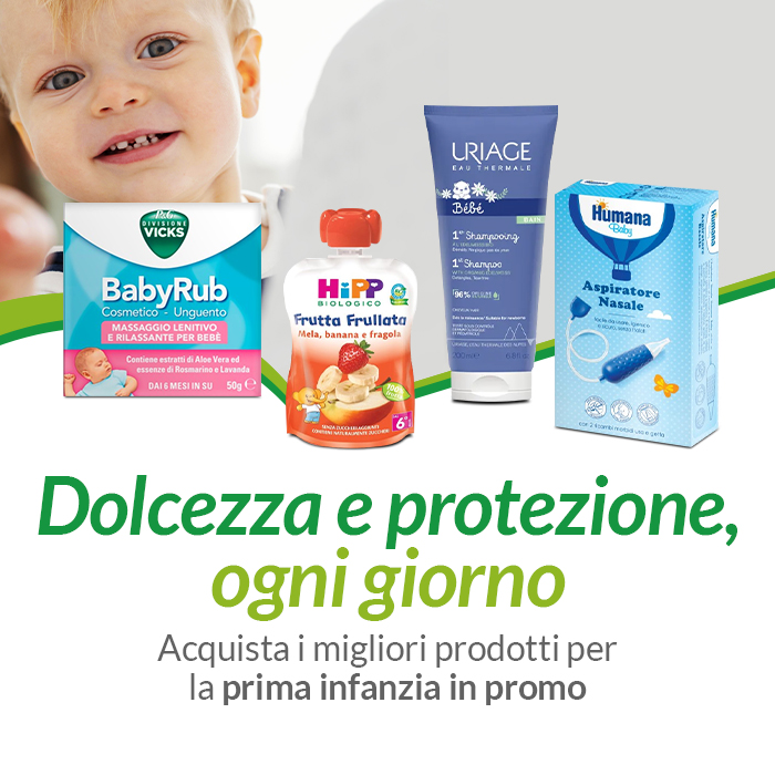 I migliori prodotti per la prima infanzia sono ora in offerta: dolcezza, protezione e qualità certificata per il benessere quotidiano del tuo bimbo. Acquistali oggi su Effeverde!