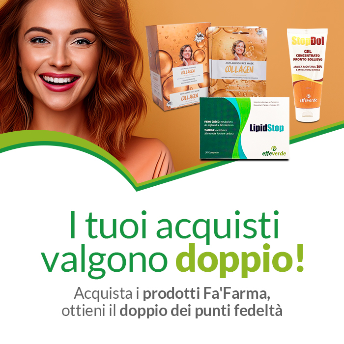 Solo per un periodo limitato, acquistando i prodotti Fa’Farma ottieni il doppio dei punti fedeltà sul tuo account.