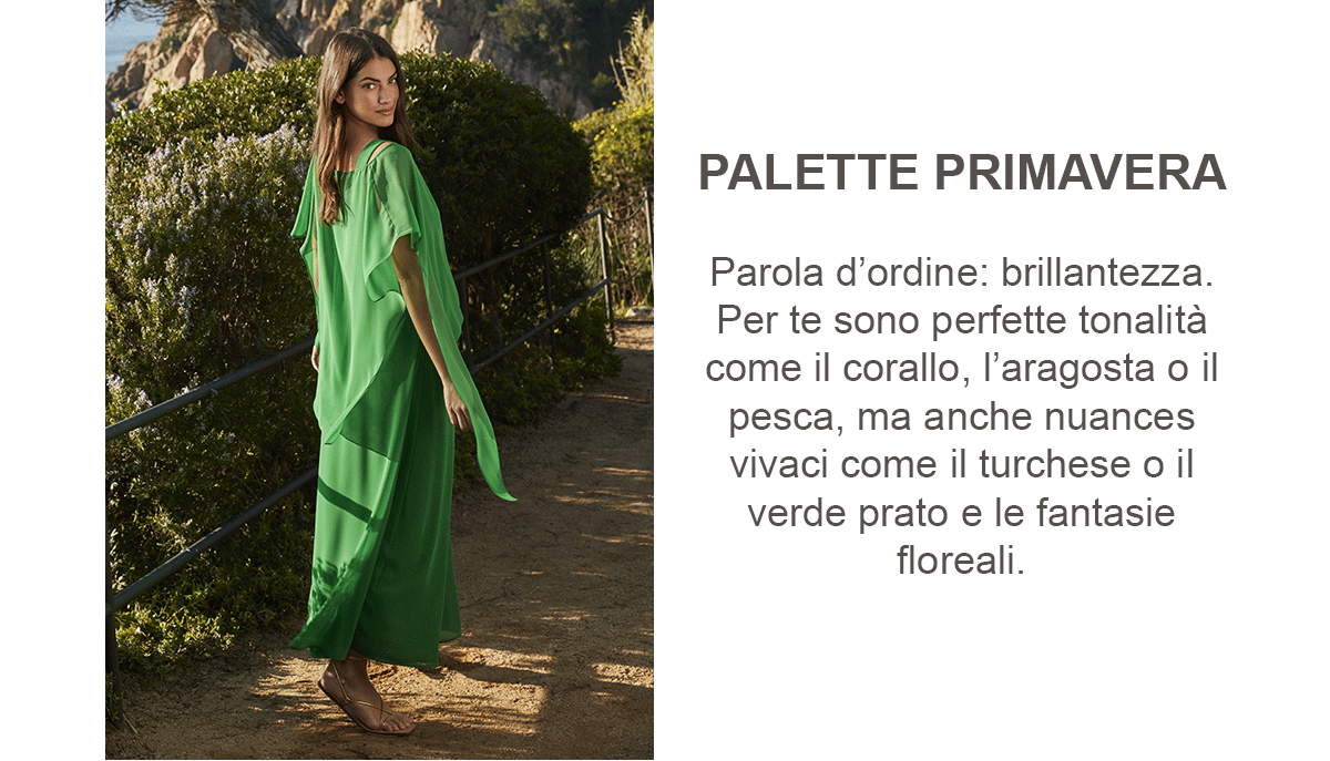 Mora, bionda, occhi verdi o nocciola… Lo sapevi che in base alle tue caratteristiche ci sono colori che possono valorizzare la tua bellezza naturale? Scopri le selezioni dedicate a ogni stagione e scegli i capi perfetti per te!