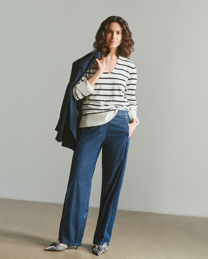 Il lavaggio blu scuro lo rende estremamente versatile, capace di accompagnare con naturalezza da look casual a look più sofisticati.