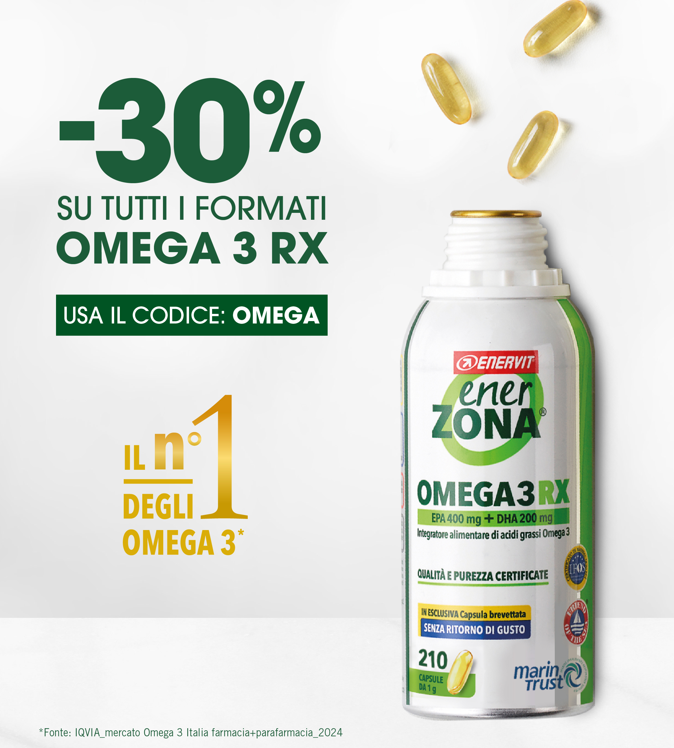 Scegli EnerZona Omega 3 RX, un integratore di eccellenza riconosciuto per QUALITÀ ePUREZZA.