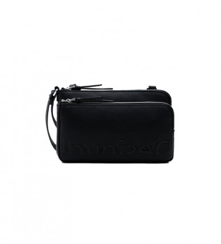 Borsa a tracolla con mezzo logo in montone nero