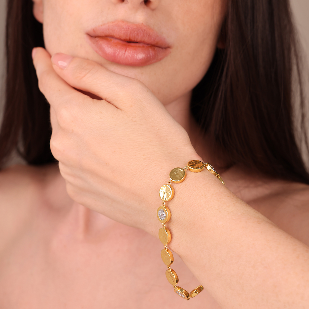 Bracciale Eclissi Dorata Cerchi alternati liscio/martellato con inserti in pavé