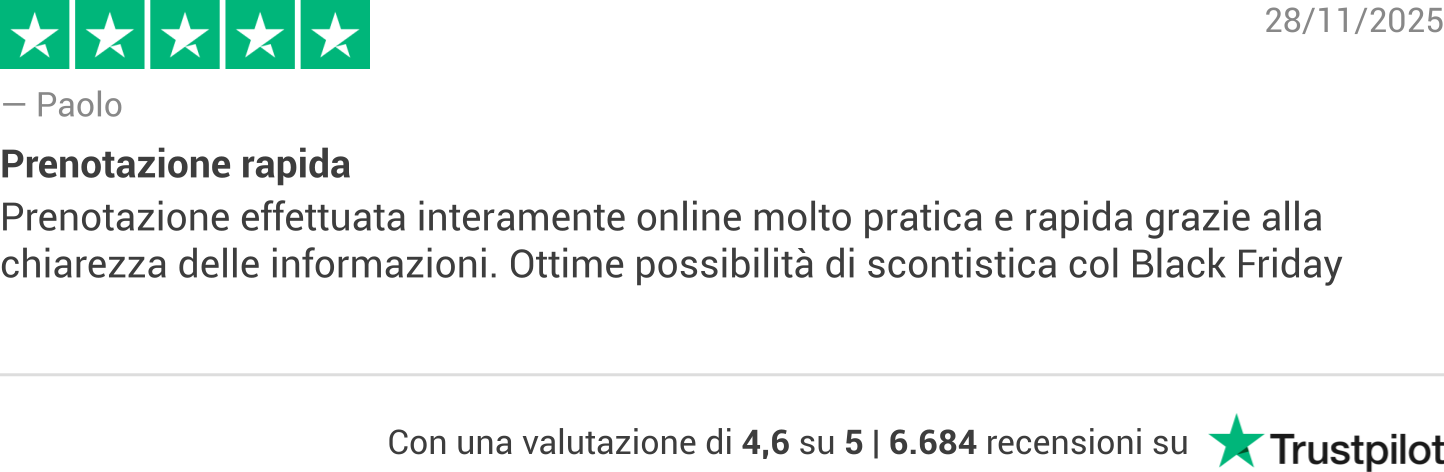 Promozione viaggi valida fino al 01/12/2025 solo fino a esaurimento disponibilità, errori e/o omissioni di stampa. Prezzi, disponibilità ed informazioni in vigore al momento dell'invio, possono essere soggetti a modifiche.