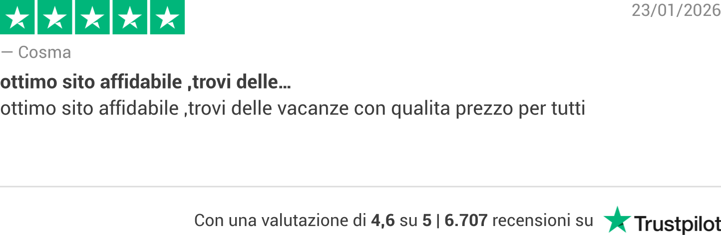 Promozione viaggi valida solo fino al 04/02/2026 salvo esaurimento disponibilità, errori e/o omissioni di stampa. Prezzi, disponibilità ed informazioni in vigore al momento dell'invio, possono essere soggetti a modifiche.