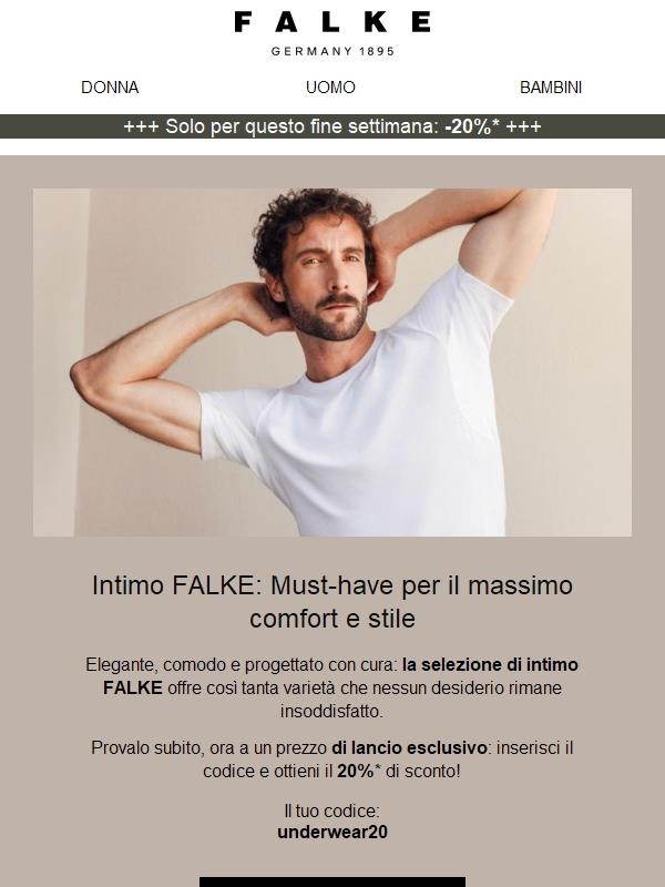 Approfitta subito del 20%* di sconto sull'intimo FALKE!