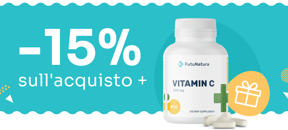sbrigati a non perdere questa eccellente opportunità di ricevere il 15% di sconto sul totale del tuo acquisto e anche un bellissimo e utile regalo: Vitamina C con rosa canina.