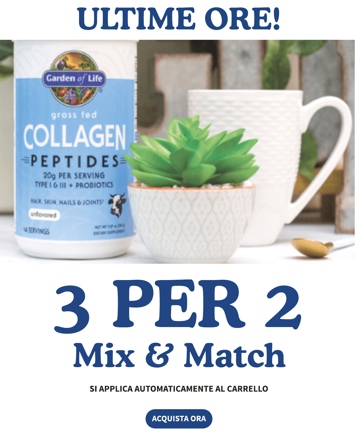 Le offerte e gli sconti si applicano solo su Garden of Life ITALIA. Garden of Life non condivide alcuna informazione con terze parti. Questa offerta non è cumulabile con altri sconti. L' offerta scade il 30/03/2023 alle 11:59 am. Pacchetti esclusi.