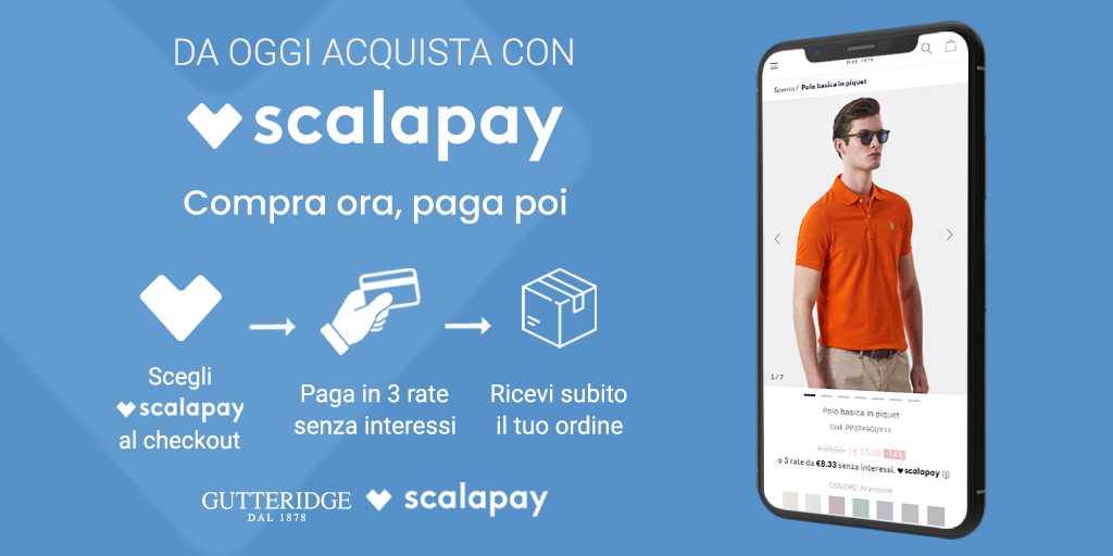 I SALDI continuano: scopri tutti i capi della collezione Gutteridge scontati fino al -50%. In più, da oggi con Scalapay puoi pagare in 3 comode rate senza interessi e ricevere il tuo ordine subito!
